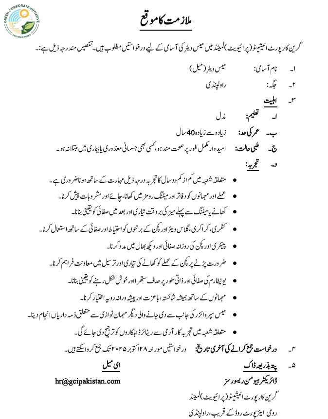 Please send your resume and a cover letter detailing your qualifications and experience to [hr@gcipakistan.com] or post by 19 October 2025 at following address: